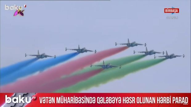 Zəfər paradında Azərbaycan Hərbi Hava Qüvvələrinin döyüş helikopterləri və təyyarələri Bakı səmasında dövrə vurublar.